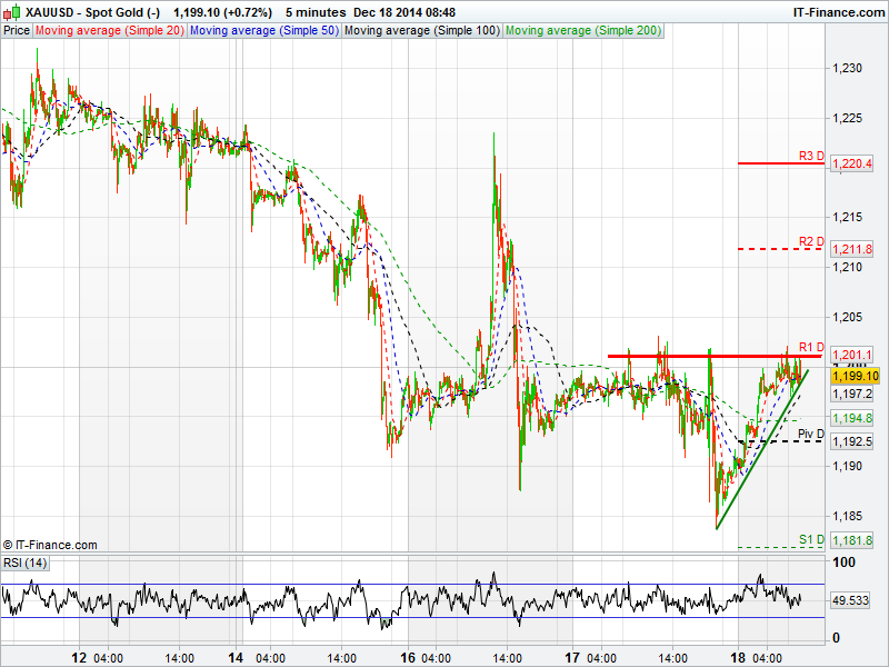 Spot Gold is still struggling to break above 1200, a level that has provided resistance on a number of occasions over the last few days. Support may come into play around the 50 day moving average around 1199. The 100 day moving average has cross above the 200 day moving average.