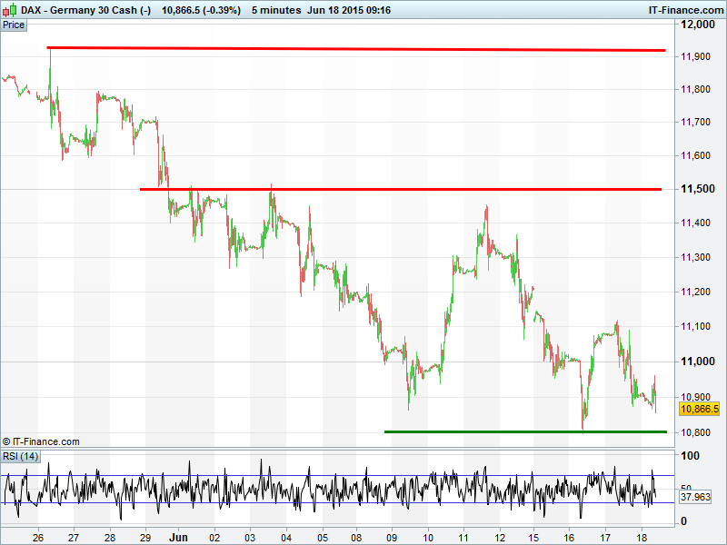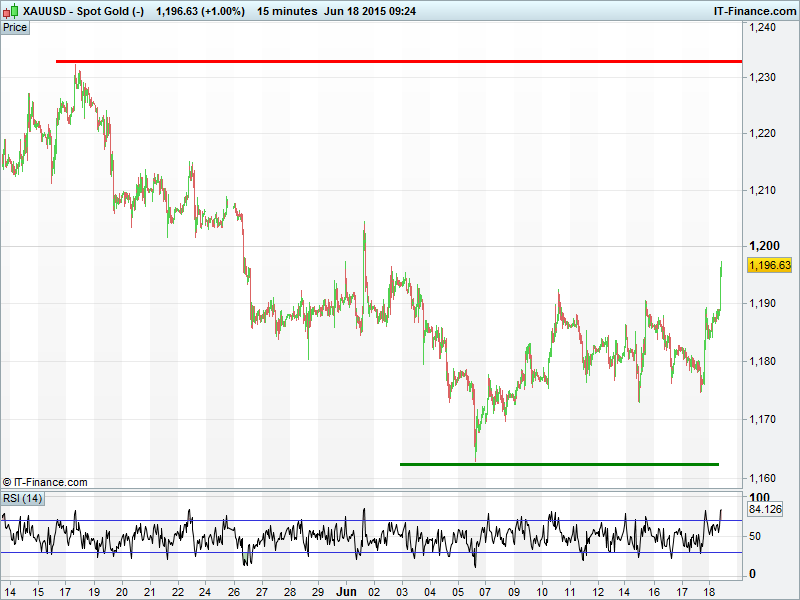 A more dovish Fed and flat-lining Greek debt negotiations are keeping equities in check this morning. While lower US interest rates for longer would normally be considered a positive equity driver for stimulus addicted markets, the committee’s cut to growth forecasts is weighing more on sentiment, adding to much uncertainty as to whether Greece will default and/or stay/leave the Eurozone monetary club. UK 100 just about holding 6650, DAX back under pressure but the DOW is holding its bounce as Gold spikes on a Fed-driven weaker USD.