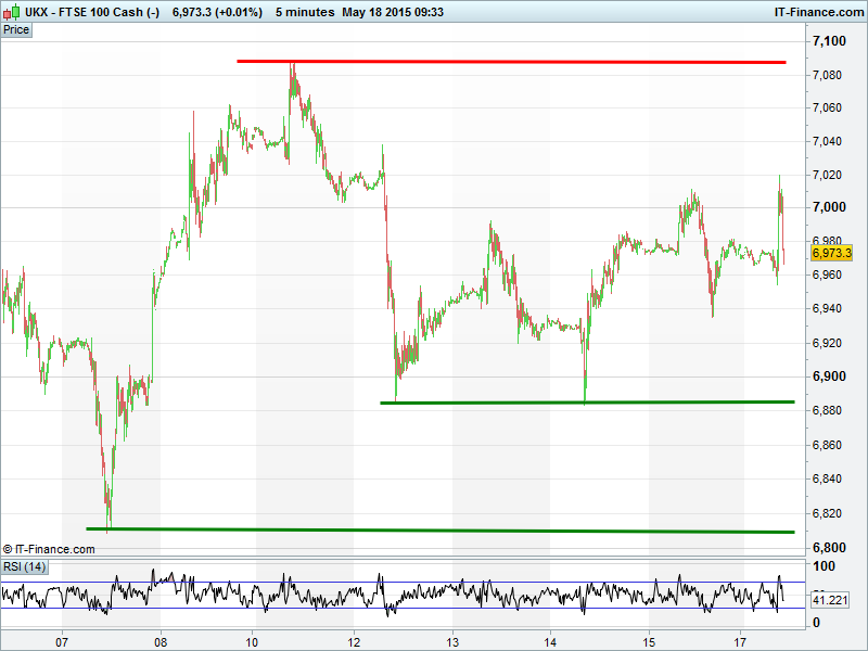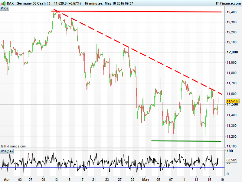 Equity markets have started the new week on the front foot, helped by upbeat earnings reports and hopes that weak US data will keep an era of dirt-cheap US Fed money around for a little longer as well as signs of stabilizing Chinese property price declines. The Greek tragedy remains very much in focus with a new loan payment deadline of 5 Jun in focus, public sector bills to pay and banks seeing money (and thus capital) flying out the door. However, panic has yet to surface. UK 100 still testing 7000, Germany’s DAX under the cosh at 11600, Wall St flat near all-time highs and Gold broken out to 4-month best $1230.