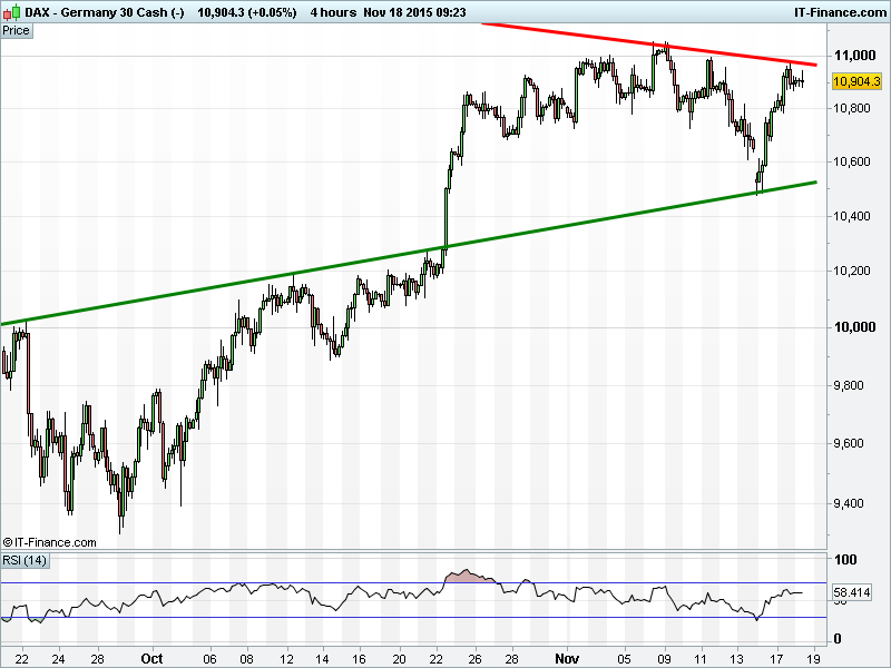 Germany’s DAX still wrestling with 4-month falling highs which saw it turn back at 10975. Potential short term support around 10880 but upside limited by significant hurdle. Beware a sharp retrace to 10600.