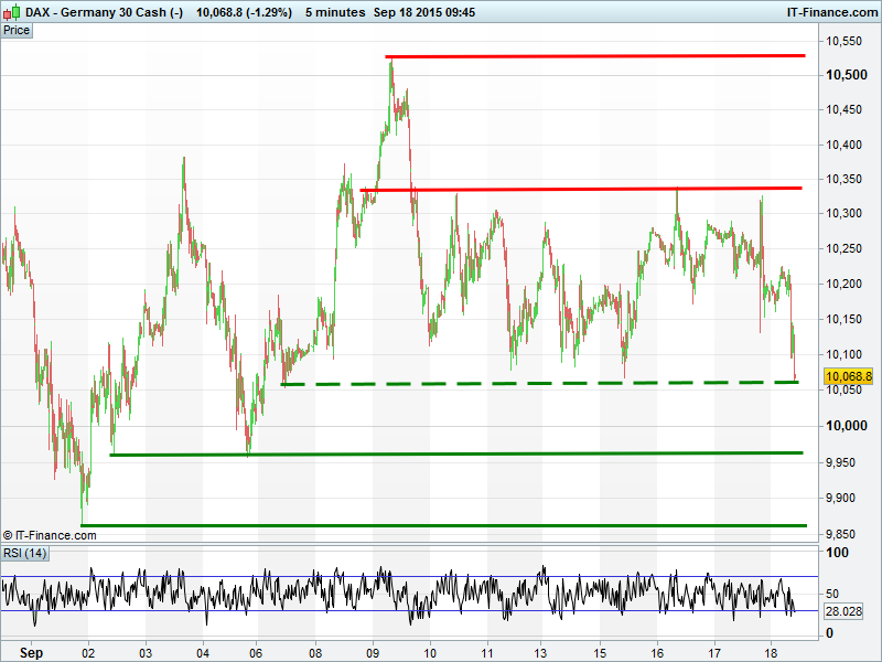 Germany’s DAX testing floor of recent sideways channel. Break or rebound?