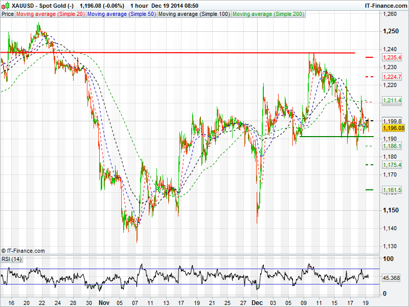 Spot Gold is still struggling to break above 1200 after briefly trading up to 1211 yesterday finding resistance at the 200 day moving average. Gold is now trading below all its major moving averages, although support could once again hold at 1191.