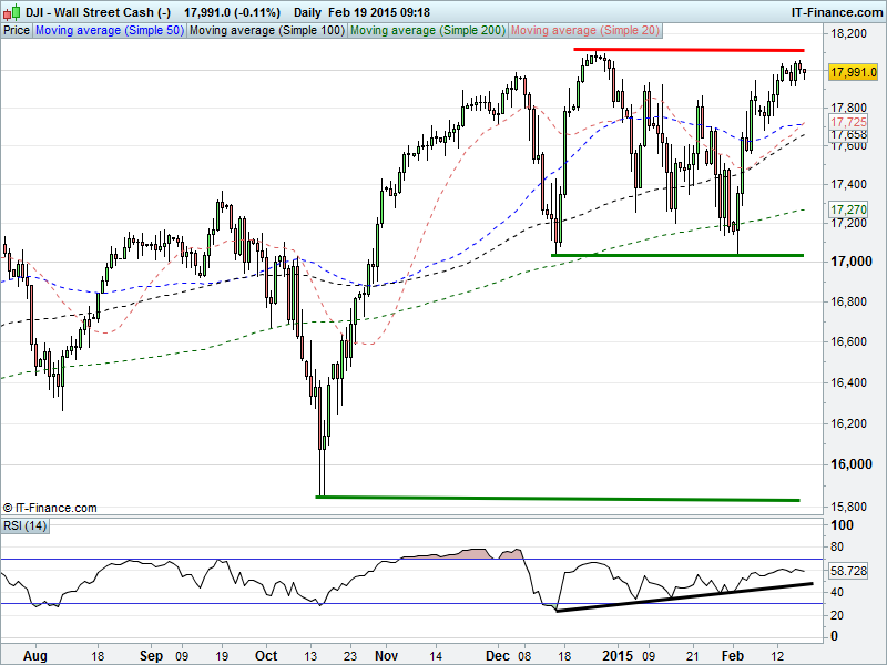 The US Dow Jones has continued to weaken back from recent 18055 highs, giving up its post-FOMC minutes gains to test 17950 this morning. While, remasining close to all-time highs and with the daily RSI still showing rising support, we can’t help but note waning progress.