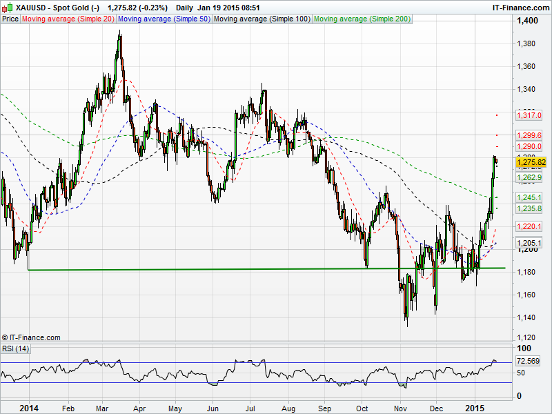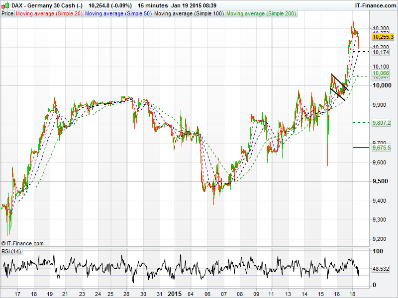 European equity markets are higher this morning adding to last week’s strong gains, which can be attributed to SNB-fuelled anticipation of the ECB delivering on expectations of further stimulus in the form of sovereign QE to support the struggling Eurozone region coupled with a strong US data which revived confidence on global growth. Note US markets close early today for Martin Luthur King day.