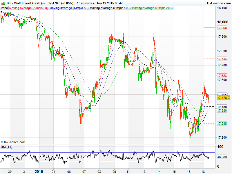 US Dow Jones is rising from last weeks lows, however, it is finding it difficult to reach the highs of early last week around 18000. The 100 day moving average has broken above the 200 day moving average whilst the RSI is also rising.