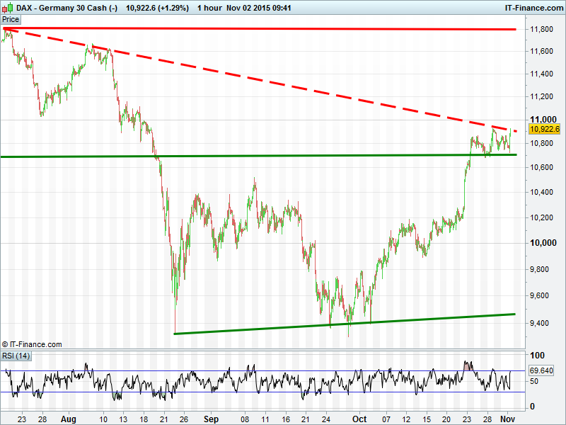 Equities doing well this morning as Chinese PMI Manufacturing data adds to calls for and expectations of more stimulus which could see the BoJ follow suit on regional weakness. Coupled with strong PMI data from Europe and dovish rhetoric from ECB President Draghi, continental Europe (the DAX in particular) is getting a boost, maintaining the October uptrend. Does the rally have legs? Is Santa doing the rounds early again this year?