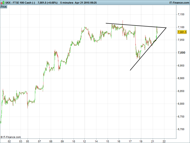 Equity markets are recovering tentatively this morning as we move further into a week so far devoid of any real macroeconomic drama – Greek concerns becoming more ‘boreish’ than bearish and expectations of what the US Fed might or might not do leading investors to look elsewhere for firm buy and sell signals. UK 100 is in the green but not surging upwards as the election continues to keep things muted in the UK. Germany’s DAX has managed to get back into its own rising channel on good economic growth forecasts while Wall St. is punching below its weight, but punching hard as it moves up past 18100. Gold hanging on just below $1200 and still failing to shine from a lack of demand with the recent rally looking weak at best. All signs point to a potential break downwards as the yellow metal’s arms tire.