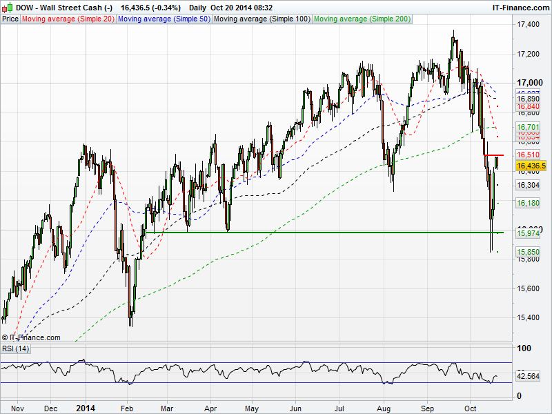 The US Dow Jones looks set to continue eating into those losses sustained last week by heading for a higher open today. However, resistance was met at 16500 again this morning, a level that could be key. A break of this level could see a test of the 200 day moving average around 16700 with support to the downside likely around 16000.