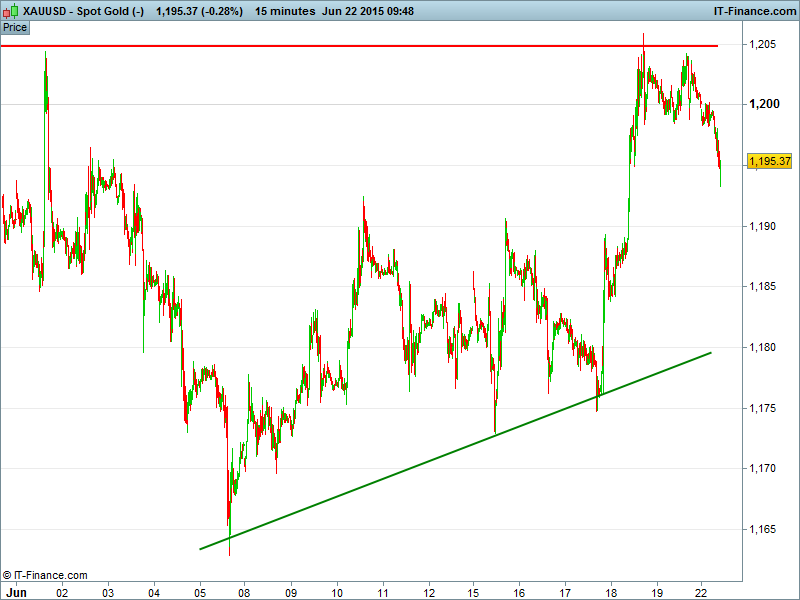 Gold has fallen back below $1200 with a bearish double top formation pressuring the yellow metal while a Greece-inspired risk-on mentality dominates as we start the week, reversing gains made last week on a dovish Fed update and weaker USD with Greek optimism replacing concerns for the time being. 200-period moving average now breached.