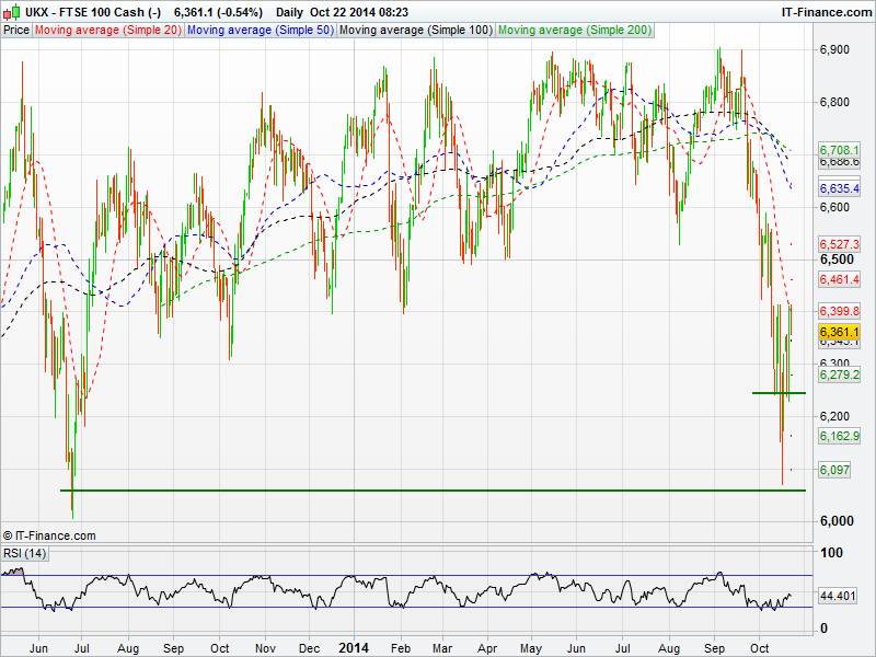 The UK’s UK 100  held its support level yesterday whilst find resistance at its 20 day moving average around 6400, a level highlighted yesterday as possible resistance. Corporate earnings could be the driver for the markets today with little in the way of data. A break of resistance at 6400 could signal a push towards 6500.