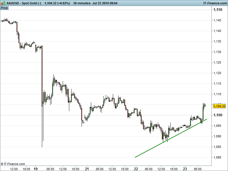Gold’s downtrend continues though the yellow metal is recovering from its worst levels having found support at rising lows from Wednesday, helped by a USD selloff this morning.
