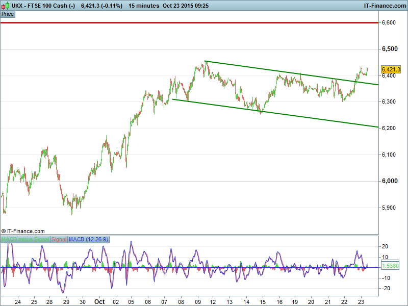 Equity markets are positive this morning with UK 100 , DAX and Dow Jones indices all safely in the blue off the back of yesterday’s dovish chatter from Mario Draghi. Extension of QE to come as early as December? The current round is not finished yet, which should surely set alarm bells ringing as to the health of the European economy even if it does mean even cheaper money for even longer. Markets are not concerned, evidently preferring to make hay while the sun shines. Let’s wait and see then.