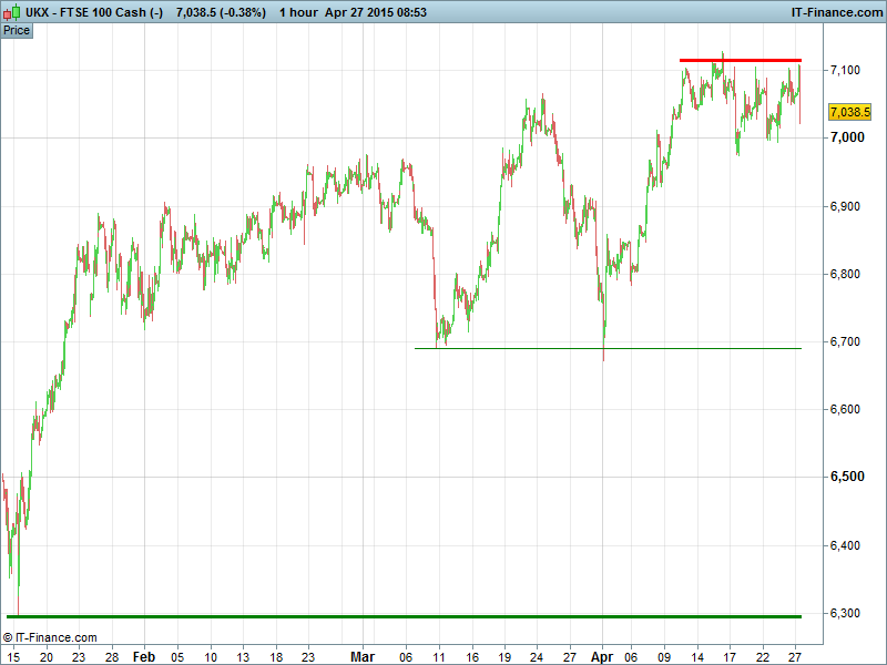 UK 100 is again selling off this morning, as it has done every time it has breached 7100 thus far, with the index remaining in a 100pt trading range.