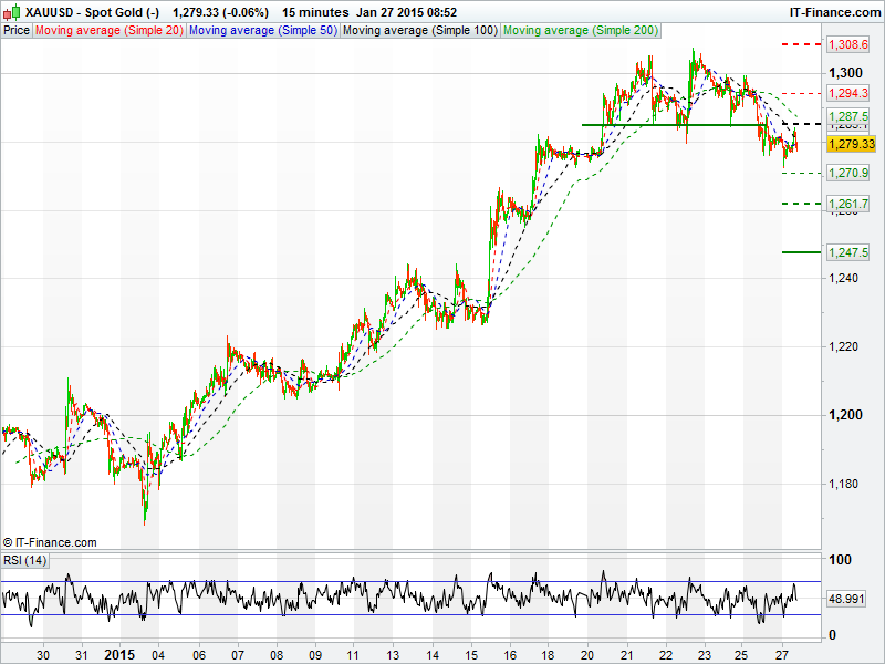 Spot Gold Gold falling again this morning making this its longest losing run so far this year. Gold is now trading below all its moving averages with with these moving average providing potential resistance. The RSI is falling after bouncing from overbought.