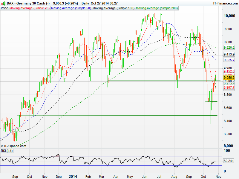 Germany’s DAX is making some real headway in clawing back the losses sustained over the last month. We have seen the DAX now break above a couple of key resistance levels with 9300 a possible target level now.