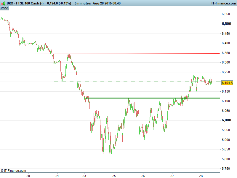 UK 100  now testing 6200 resistance after a successful breach of the 6100 level yesterday as the index moved out of the bullish triangle pattern.