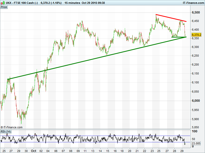 Equity markets back in the red this morning with a more hawkish than expected Fed message reviving expectations of a December US rate hike while strong Japanese data has trimmed hopes of more BoJ stimulus tonight. While US bourses appeared to rally on Fed-inspired US growth hopes, Europe’s reaction suggests discontent at the prospect of tighter/less accommodative policy from both major central banks. Is the ball back with Mario at the ECB? Mixed corporate results, notably the Banks, also holding sentiment back.