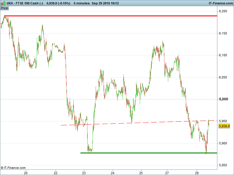 UK 100 off overnight lows at the base of a week-long 310pt range. Watch out for 5910 acting as support for a bounce after an initial pullback, with a subsequent break of 5950 putting 6000 and above on the cards.