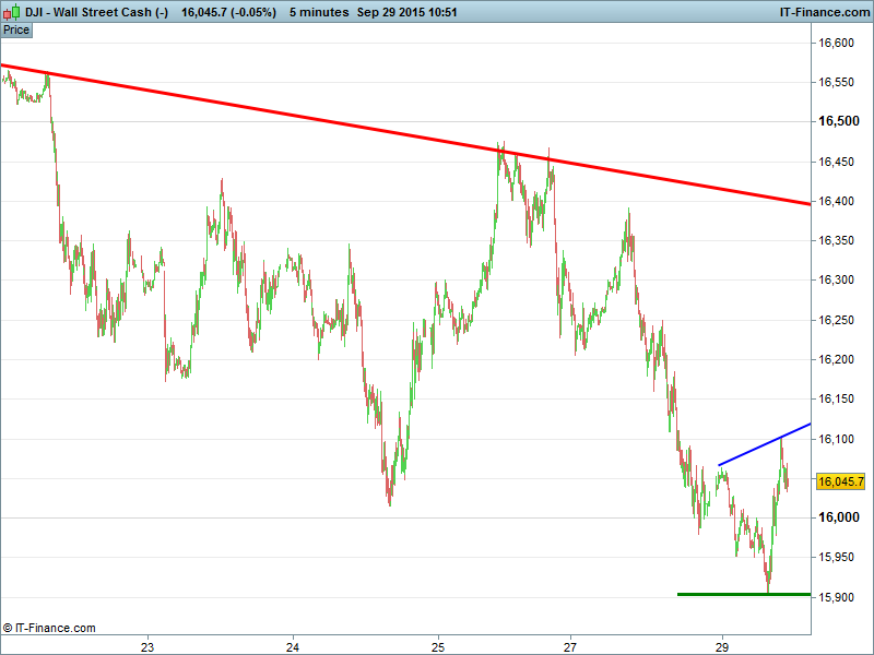 US Dow Jones futures back from resistance 16100 this morning. While 15900 could be tested again this week, keep eyes peeled for a pullback to be halted at 16000 or 15950, maybe when US markets start trading this afternoon, with a break back above 16125 confirming a potential relief rally of sorts.