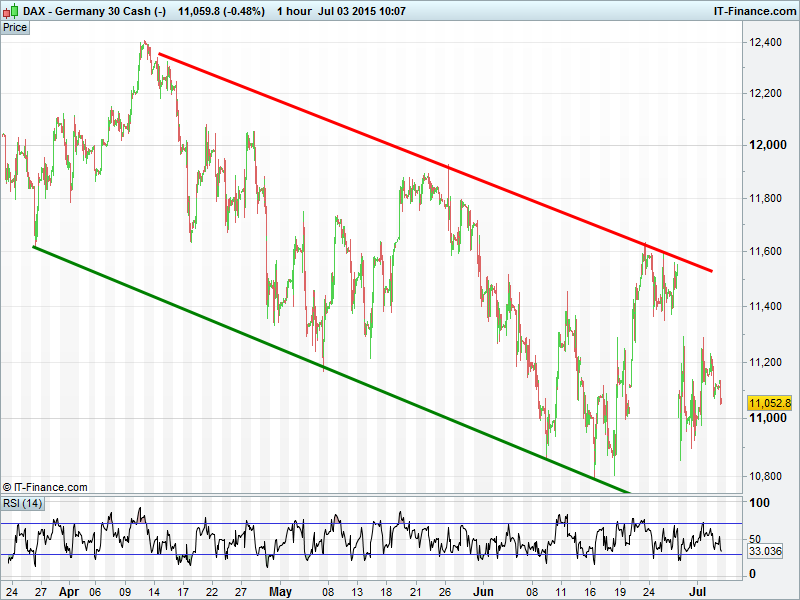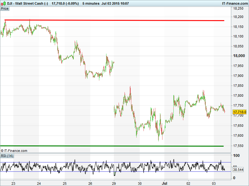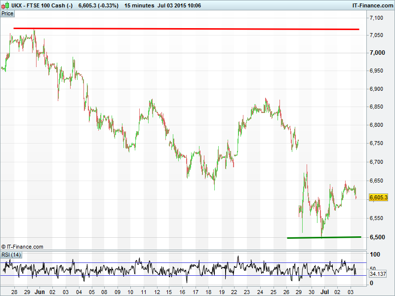 Equity markets back in the red, as might be expected on a Friday ahead of yet another crucial weekend for the Eurozone sovereign debt crisis, with the Greeks set to vote yea or nay (ironically, yes = nai in Greek while Oxi = no) in a Sunday referendum on bailout conditions which could decide the troubled country’s (and PM’s) future within the eurozone currency club. Polls closely called. Markets duly cautious.