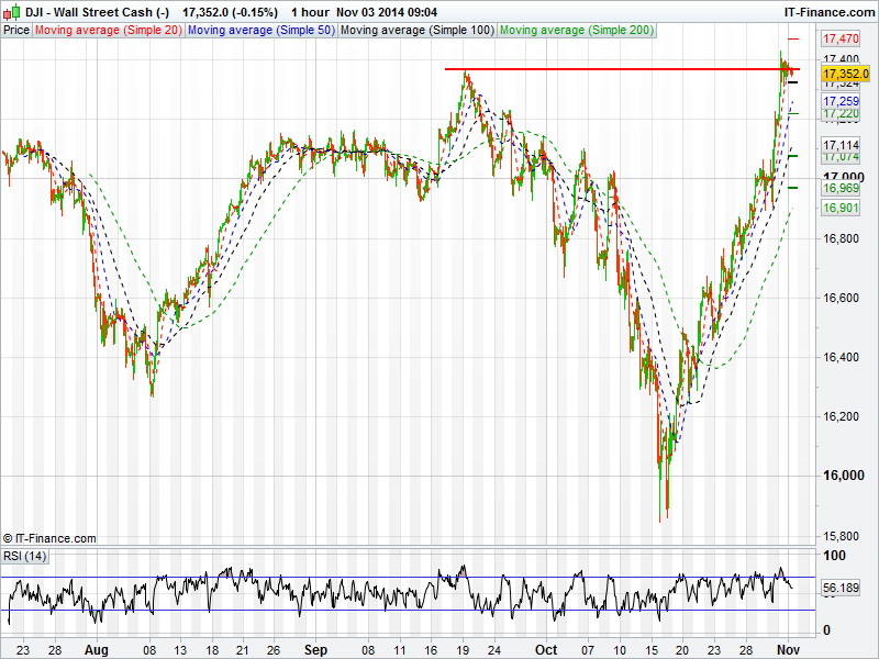 US Dow Jones set a new all-time high on Friday after estimate beating macro data was followed by strong corporate earnings. The Dow is trading above all of its major moving averages, whilst the RSI is falling from overbought territory.