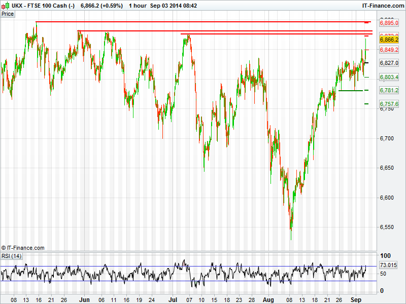 Global markets have once again opened strongly after some better than expected macro data out of Asia overnight was followed by strong data from Spain this morning, showing that the Spanish service sector rose at it’s fastest pace since December 2006. Could this figure set the tone for the other countries who will be releasing their own PMI data throughout this morning too. Also helping too keep the markets heading north this morning was news that Russian President Putin had spoken with the Ukrainian President and both had largely agreed to a way out of the trouble in the area. However, tensions deepened in the Middle East as reports of another US reporter being executed was released, amid concerns that the US may now deploy troops on the ground.