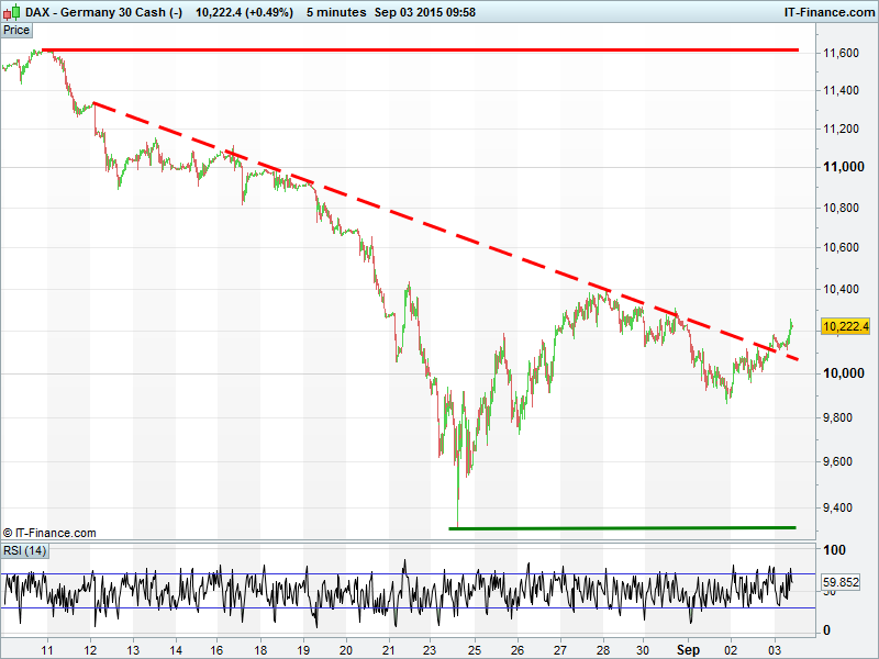 US Dow Jones futures broken above falling highs from mid-Aug. Like DAX and UK Index peers, likely still needs to break above last Aug highs before investors get too excited about the potential for a full retracement of  Aug declines.