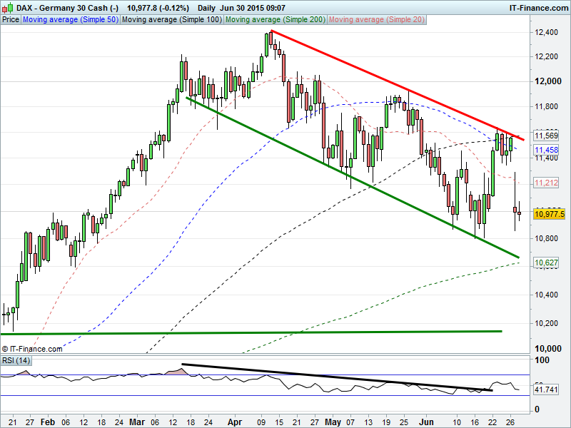 Equity markets mixed this morning, still under pressure from Greek worries and having retraced almost all of yesterday’s valiant attempt to close the gap downs we took into the new week. All eyes on whether Greek PM Tsipras accepts creditor proposals, tail between legs, or Europe cracks under the threat of a Grexit and concedes ground. Athens is officially out of money today (bailout expires, default on IMF debt) and the clock ticks towards Sunday’s planned ‘in or out’ Greferendum.