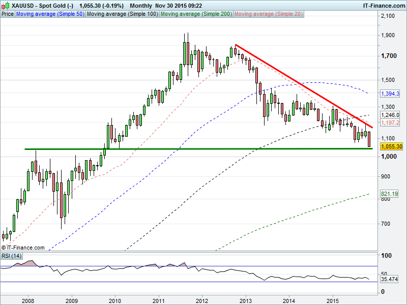 Gold’s still in strong downtrend, hindered by strong USD ahead of a US rate rise which will increase the opportunity cost of holding a zero-yielding asset. Will weakness continue to Feb 2010 lows of $1044 which correspond with 2008 highs. Or worse?