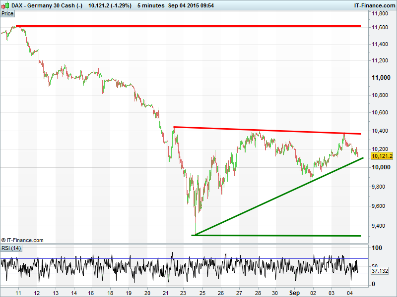 UK Index  retraced breakout above Aug trend-line of falling highs to test 6100 overnight support. DAX traded back from Sept highs but breakout above Aug falling highs holding. Dow pulled back all the way back to test 16200 and Aug trend-line of falling highs. Gold found support at $1122 after a Draghi-weakened EUR saw the USD rally to make the safehaven metal more expensive.