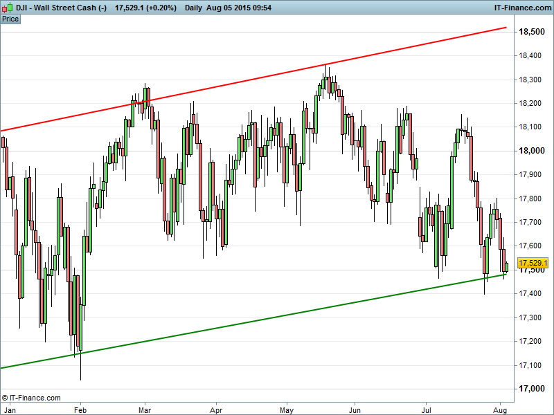 Equities mixed this morning – UK 100 pretty much flat despite some impressive performances by UK miners while Germany’s DAX made an early dash north buoyed by exporters (i.e. car manufacturers) on a Euro pullback. Dow Jones still testing support around July lows 17460 as US bourses await Friday’s non-farms report while digesting hawkish Fed commentary and a resultant stronger USD.