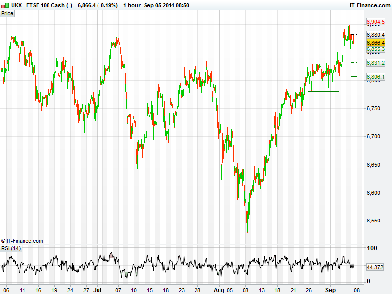 Global markets continue to be driven by events in Ukraine with reports that a ceasefire could be agreed today after a meeting between the Russian and Ukrainian Presidents later this morning. The ECB also helped markets higher yesterday after cutting interest rates by 10 basis points to 0.05%. The markets, in particular the UK 100 , were dragged lower during the afternoon session as BP, who hold a 5% weighting on the UK 100 , fell 6% on news that they had been found ‘grossly negligent’ over the Gulf of Mexico oil disaster back in 2010.