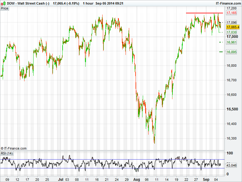 The US Dow Jones set yet another all-time high yesterday before pulling back later in the session. Non-Farm payrolls due for release this afternoon could cause some volatility in the markets. Resistance could come at yesterdays high with support around 17000.