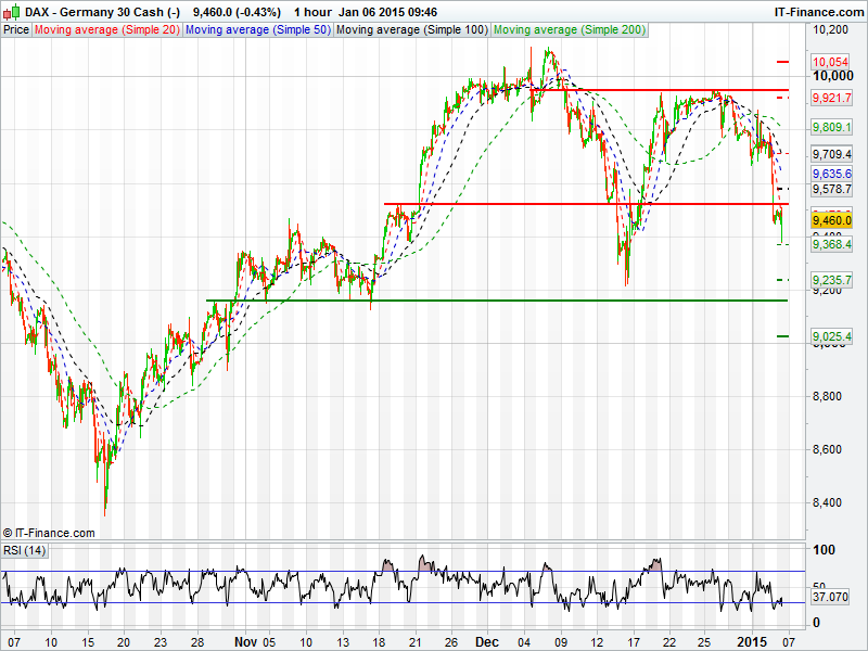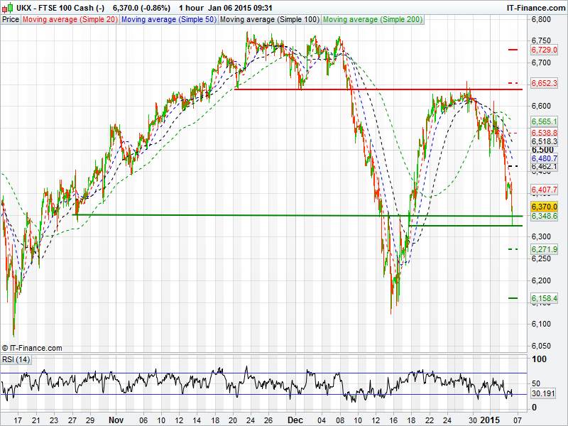 Germany’s DAX is traded at a 3 week low this morning breaking below 9400 briefly, before regaining around 80 points. Resistance may be met at 9500 and 9600, whilst support may come around 9400.