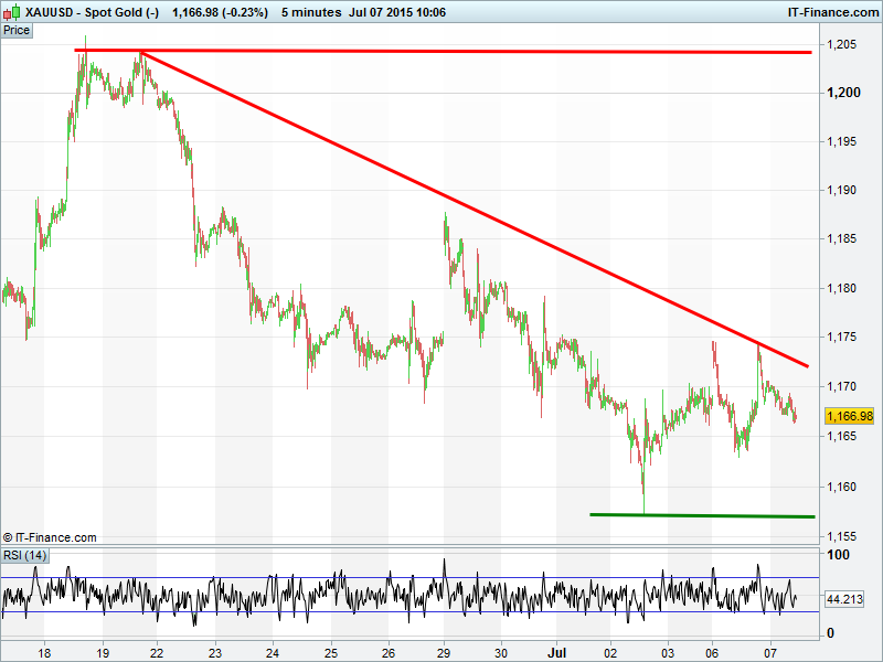 Gold still sideways, failing to act as a safehaven should, hindered by poor 2015 performance and a stronger USD. Resistance twice yesterday at $1175, and trend of falling highs to negotiate before upside to mid-June highs can be assumed.