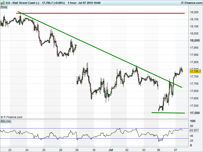UK Index  & DAX rather quiet this morning as we await further news on Greece’s next move on bailout negotiations post referendum, however, US futures holding up at their best overnight levels. The European pair both remain in clear short term downtrends,  however, the latter has managed to deliver a decent breakout.