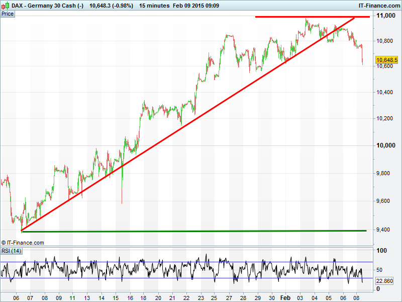 Equity markets in the red this morning as markets digest disappointing China trade data which has heightened global growth worries. Greece standing firm on bailout while Ukraine situation reviving geopolitical risk. Note UK Index miners holding up well at the expense of utility defensives. Note gold bounced off its post US jobs report lows.