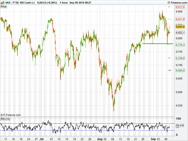 Markets struggled yesterday as reports that fighting continues in Ukraine after a ceasefire was agreed upon on Friday. Closer to home the Scottish vote for independence is hotting up with claims that the yes/no voting stands at 50/50. Many stocks with direct exposure to Scotland came under pressure yesterday causing the UK 100 to fall from those 14 years highs it hit last week. Traders will be monitoring both of the issues above closely, with the EU holding off on further sanctions against Russia, allowing more time to assess the viability of the cease-fire between the two nations.
