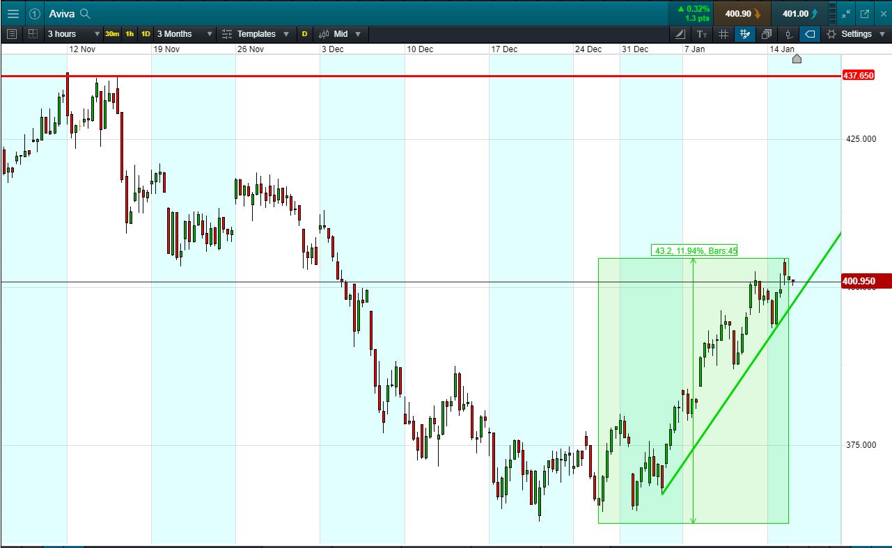 Will Aviva turn, or will it continue to rise towards 437p November highs?