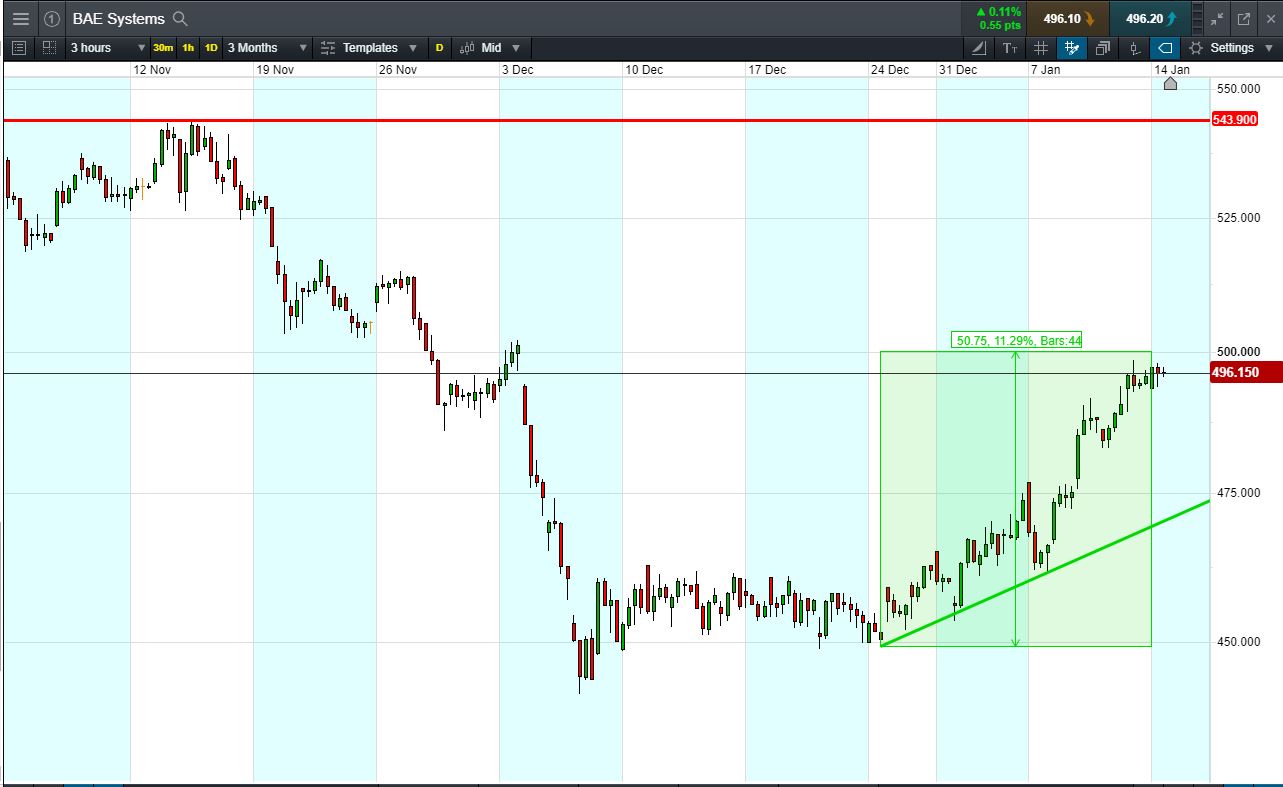 - The chart shows BAE Systems price action since early November.