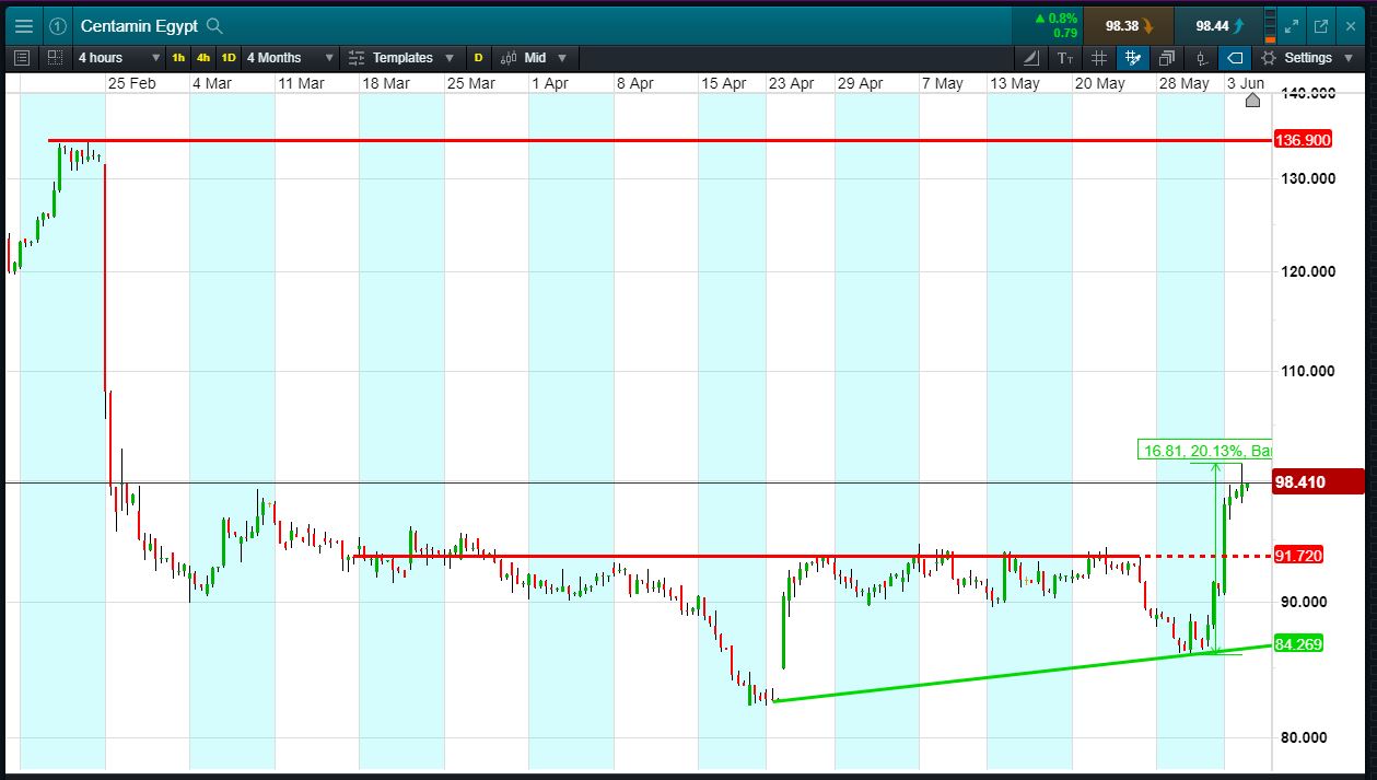 • Shares +20% with a breakout above 91p; Now trading 98p (at the time of writing).