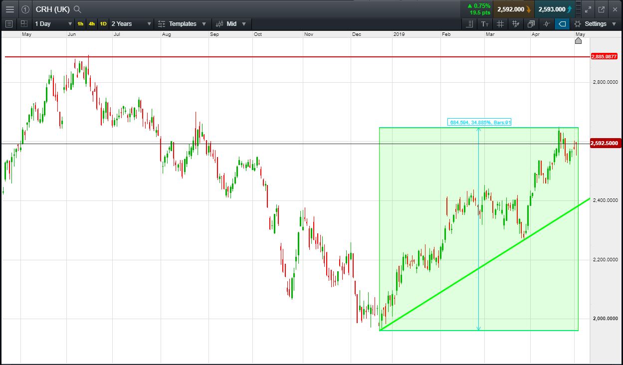 Let’s assume the CRH trend continues to new all time highs of 2885p (+11%). Your profit would be £1100, from your initial investment of £2,000.