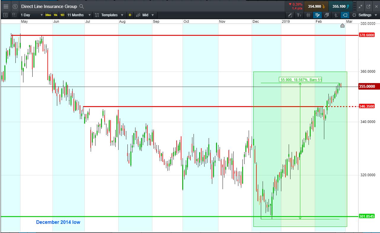 Will Direct Line turn, or will it continue to rise to May ’18 highs around 378p?