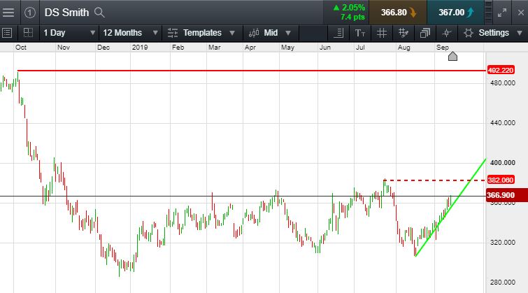 Will DS Smith turn, or will momentum take it towards October 2018 highs of 492p?