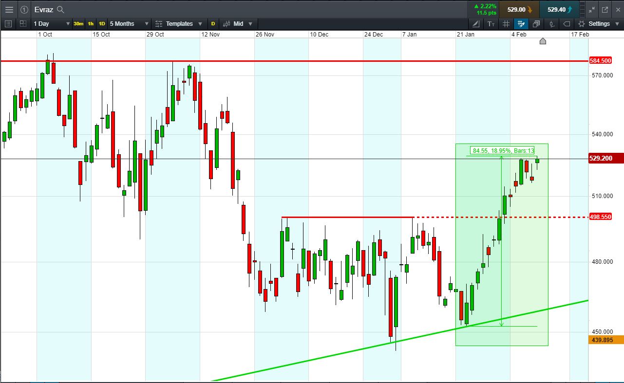 Will Evraz turn, or will it continue to rise to November highs around 584p?
