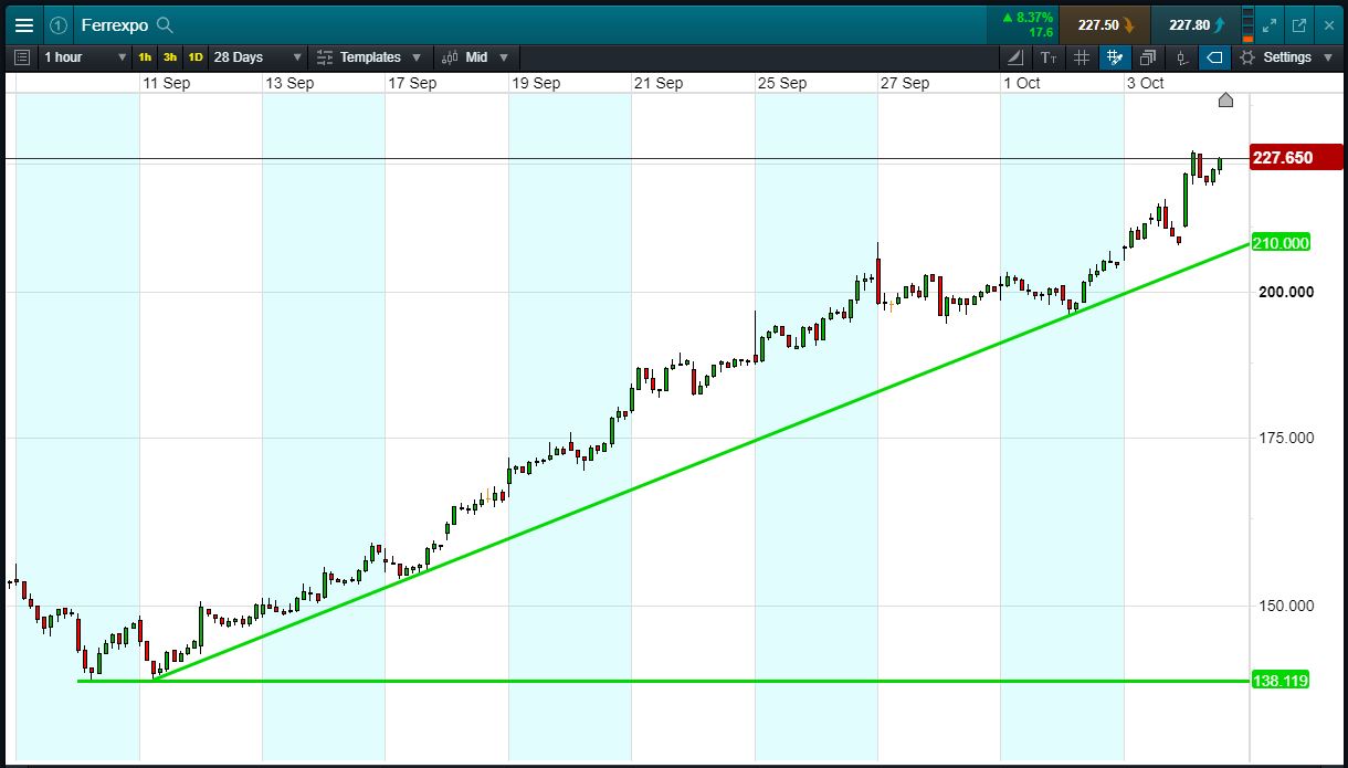 Will Ferrexpo turn, or will it continue to rise beyond 228p?
