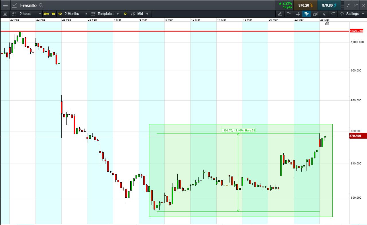 Will Fresnillo turn, or will it continue to rise to Feb highs around 1027p?