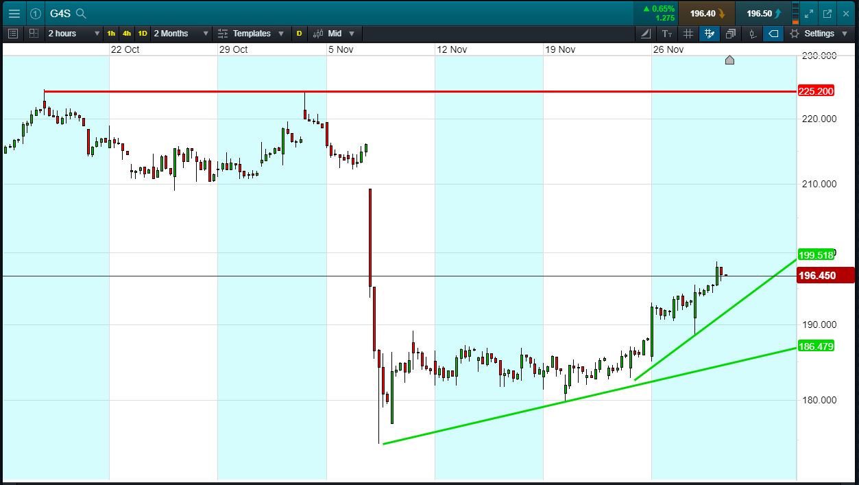 Will G4S turn, or will it continue to rise beyond 198p?