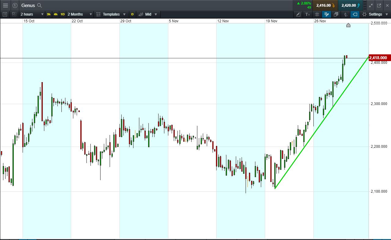 Will Genus turn, or will it continue to rise beyond 2599p mid-September highs?