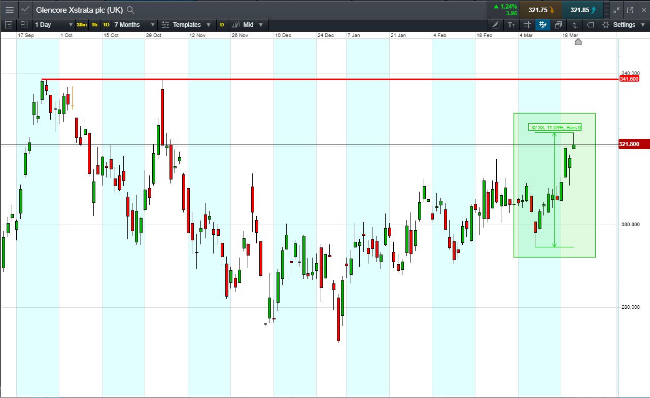 Will Glencore turn, or will it continue to rise to Oct ’18 highs of 341p?
